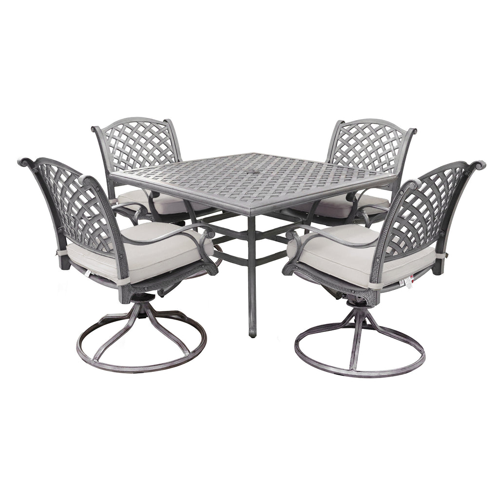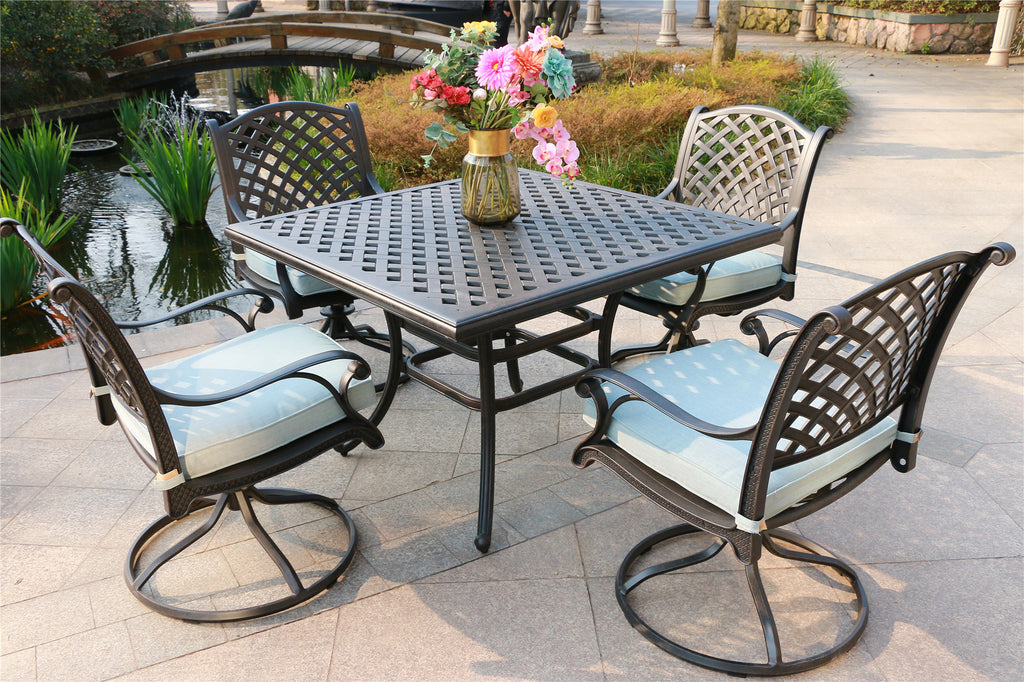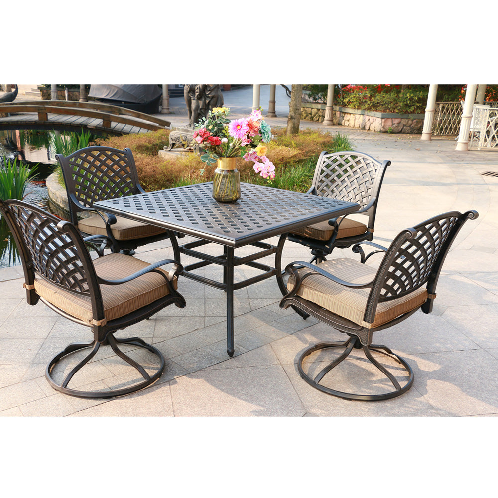 Sparta 5 Piece Aged Bronze Aluminum Square Dining Set with 4 Cushioned Swivel Dining Chairs